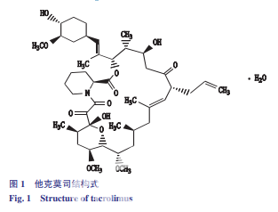 他 克 莫 司(tacrolimus)為 17- 烯丙基 -1,14- 二羥基 -12-[2-(4- 羥 -3- 甲氧基環(huán)己基)-1- 甲 基乙烯基]-23,25- 二甲氧基 -13,19,21,27- 四甲 基 -11,28- 二 噁 -4- 氮 雜 環(huán)[22.3.1.04,9]二 十 八 烷 -18- 烯 -2,3,10,16- 四 酮 一 水 合 物,結(jié) 構(gòu) 式 見(jiàn) 圖 1。相對(duì)分子質(zhì)量 822.02,按 無(wú) 水 物 計(jì) 算,含 C44H69NO12(他克莫司與異構(gòu)體I、異構(gòu)體II之和)應(yīng)為 98.0% ~102.0%。