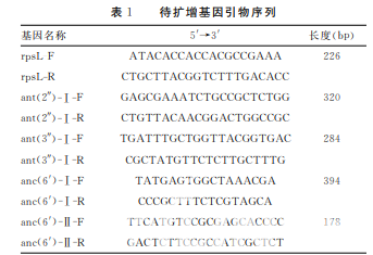 采用 PCR檢測(cè)4種氨基糖苷類(lèi)修飾酶基 因ant(2″)-Ⅰ、ant(3″)-Ⅰ、anc(6′)-Ⅰ和anc(6′)-Ⅱ。